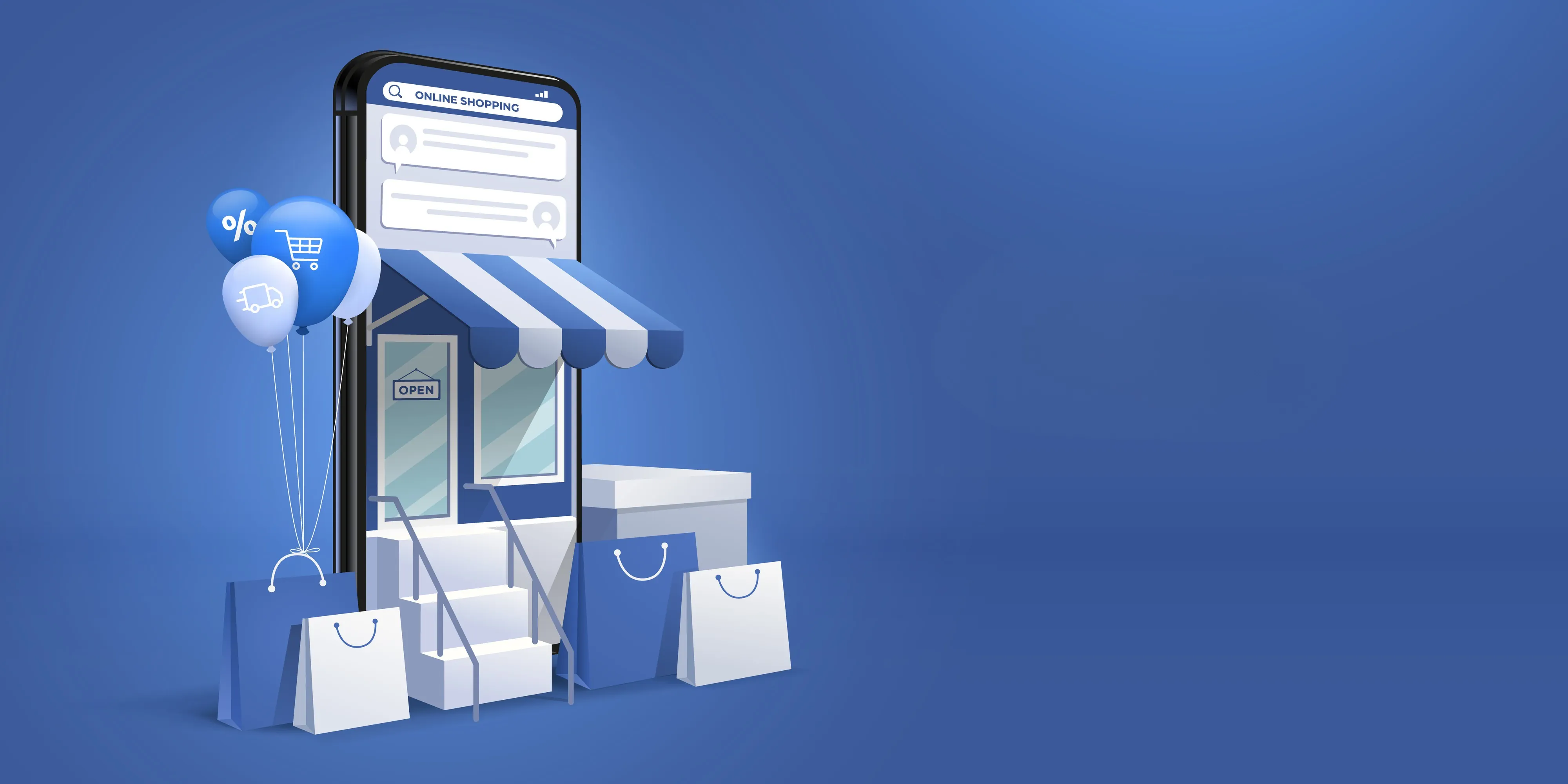 Illustration eines Onlineshops im Smartphone-Design – Symbol für die Leistungen einer E-Commerce Agentur im digitalen Marketing.