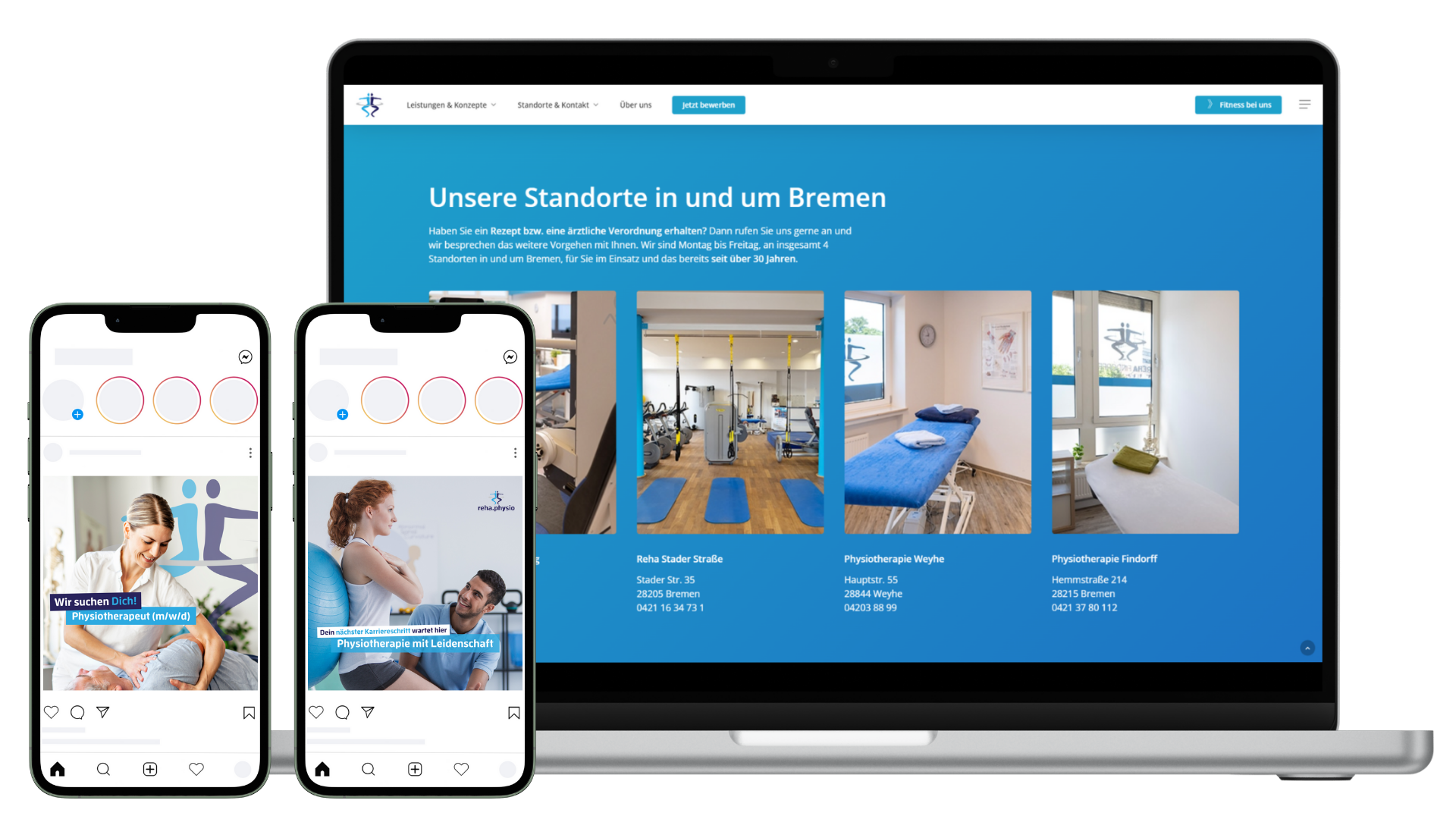 Das Kompetenzzentrum für Physiotherapie mit über 30 Jahren Erfahrung im Raum Bremen. An vier Standorten in Bremen und Umgebung steht mit Reha Physio ein erfahrenes Team im Bereich der Physiotherapie zur Verfügung. Seit mehr als drei Jahrzehnten wurde das Angebot kontinuierlich ausgebaut, die Behandlungsräume modernisiert und das therapeutische Equipment stetig an aktuelle Standards angepasst. Die großzügig geschnittenen, lichtdurchfluteten Räumlichkeiten bieten eine angenehme Atmosphäre und ausreichend Platz für individuelle Behandlungseinheiten.